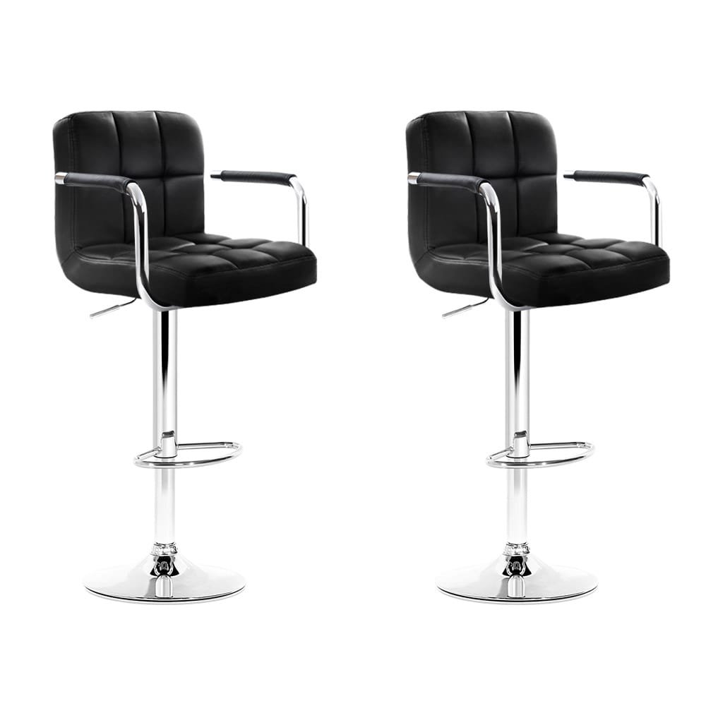 These modern bar stools are sure to complement any household and will be a great addition to a kitchen and dining setting. Upholstered in faux leather, the bar stools also feature an extra thick foam padding seat for ultimate comfort. The semi-circular footrest ensures relaxed sitting while the omni-directional seat makes for easy turn to any facing. Better still, the height can be easily adjusted with the SGS-tested gas lift and the large base ensures stability at all times. Not least, a floor protector under the base helps to keep your pristine floor scratch-free at all times.