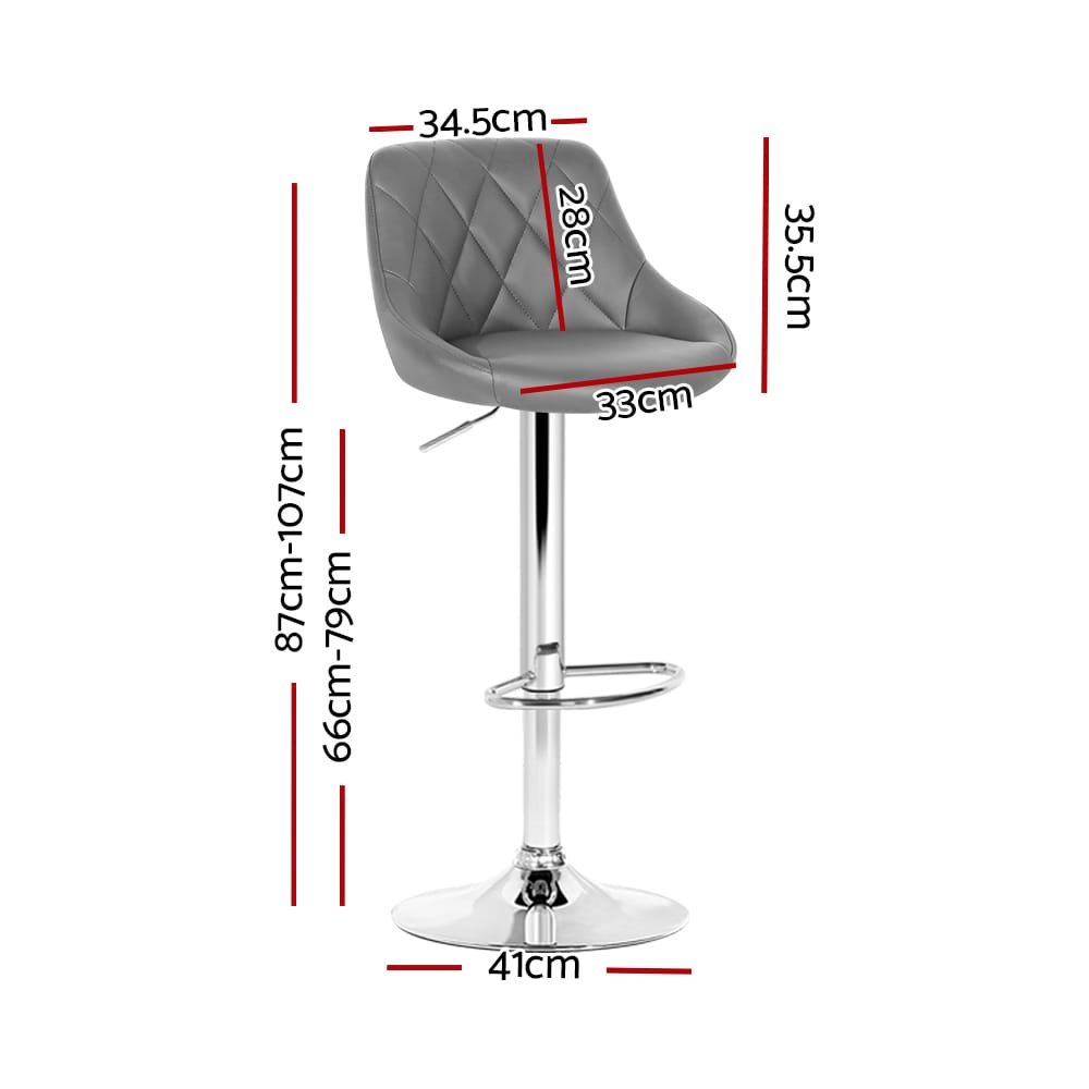 Artiss 2x Bar Stools Leather Padded Gas Lift Grey