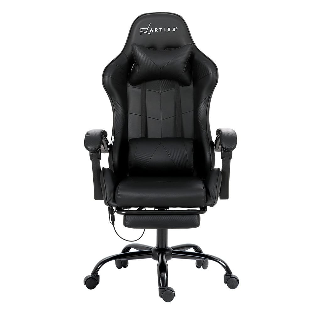 Want to get a massage in the middle of work or gaming? You can really have it all with the Artiss Massage Gaming Chair. It features an ergonomic design with full body support, premium PVC leather upholstery, high-density sponge padding and a sturdy metal frame. The racing chair design is perfect for gamers or anyone who wants some extra flair in their home office. It features premium gas lift components for easy height adjustments, and it can tilt back between 90 and 145 degrees for that perfectly comfortable posture. The chair features 6 massage points aimed at the upper and lower back, perfect for when you really need to sit back and relax. The headrest is removable and adjustable so you can customize your comfort. Not least, the chair is 360 degrees rotatable and comes with five dual-wheel castors for easy mobility. Not matter whether you're working, gaming, or taking a long-desired break, the Artiss Massage Gaming Chair is here to provide premium comfort and support.