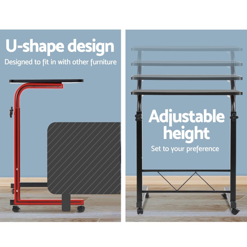 Designed to be strong and lightweight, our Mobile Laptop Desk has ample desk area to work efficiently without feeling cluttered. The height is easily adjustable to your preference and the U-shape design fits in well with most furniture such as sofas and beds to get a comfortable sitting position. The castor wheels rotate 360 degrees and can be readily locked down in place. Or, if you like, remove the detachable wheels for a more permanent fixture. Not least, with its thick 17mm MDF board desk top and sturdy powder-coated H-shape steel frame, our Mobile Laptop Desk is absolutely versatile to function as any type of table top.