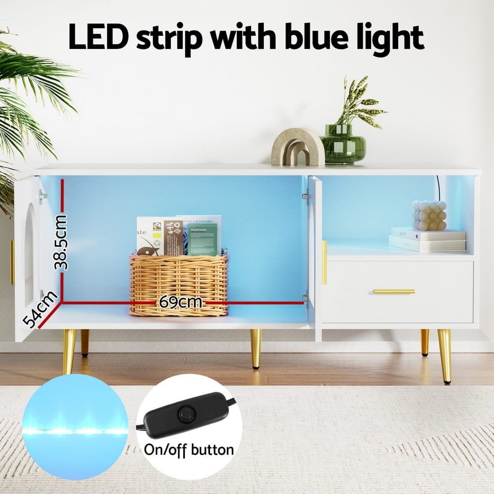 Artiss LED Coffee Table Shelf Drawer Storage White