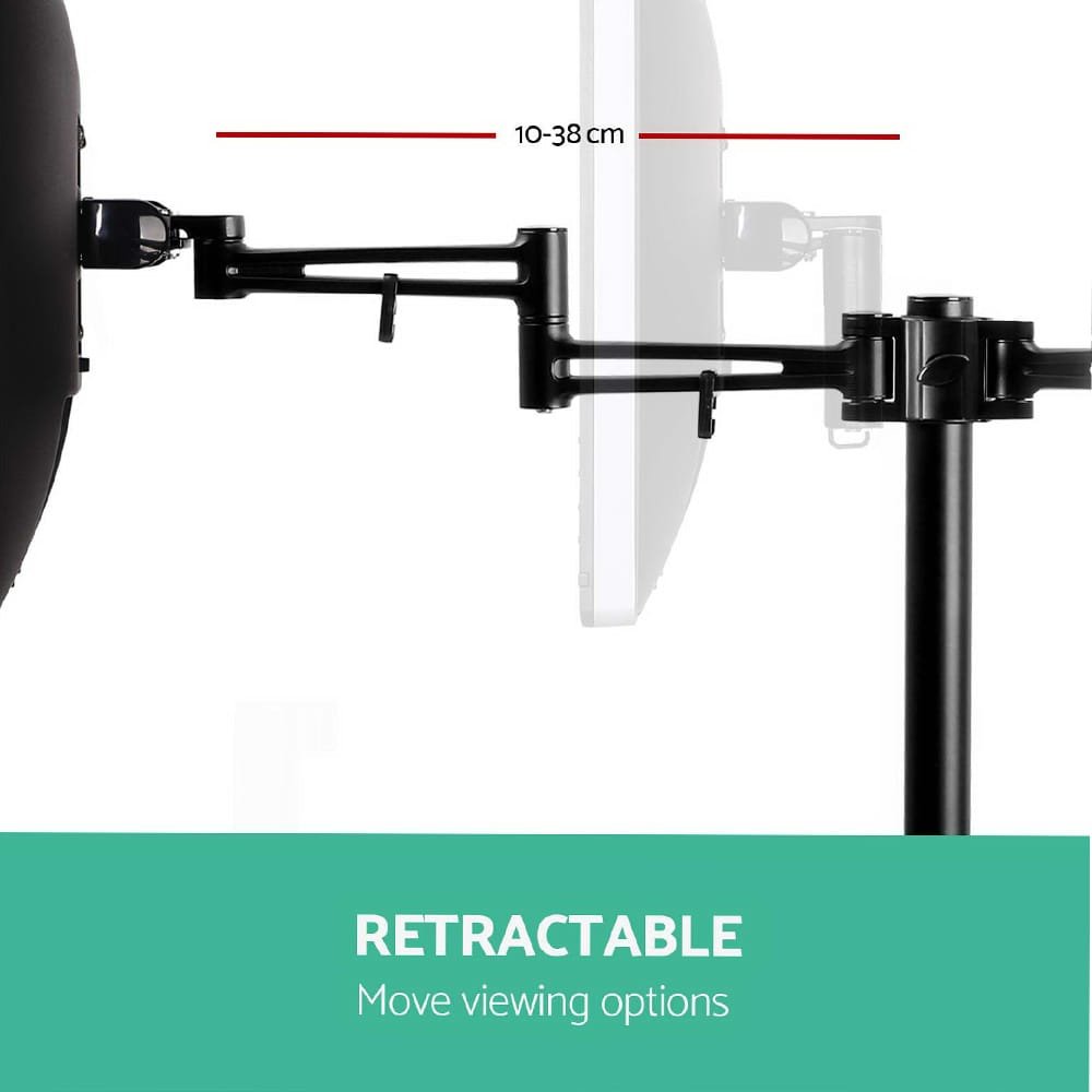 With it, you can mount two monitors on one arm not only for efficiency but also add some panache to your work desk. You can extend each monitor up to 38cm to set your preferred viewing position and retract them with ease. Height adjustments can be easily done using the height adjustment knob. It also allows you to swivel your monitors 360° and set in either landscape or portrait format.
