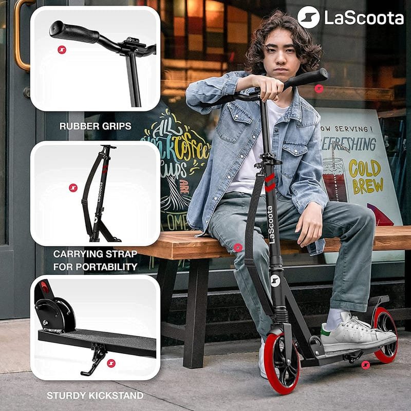 Lascoota Pulse Kick Push Commuter Scooter Teen Adult Black