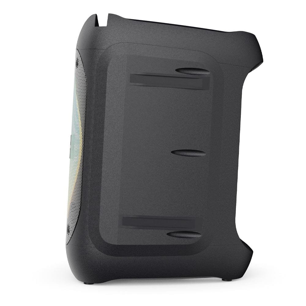 Majority PS100 Party Speaker 40w Bluetooth Karaoke PA System – Black – Experience the ultimate in portability with the Majority PS100 Party Speaker. This powerful device features booming sound, vibrant lights, and True Wireless Stereo, delivering an unforgettable on-the-go music experience. With Bluetooth, FM radio, SD and USB playback options, and EQ controls, this speaker truly has it all. Plus, its rechargeable battery and USB-C charging make it the perfect party companion for up to 10 hours of playback. And with the addition of party lights and karaoke capabilities, the PS100 is sure to bring the energy to any gathering. Don’t settle for anything less than the best—choose the PS100 Party Speaker today!