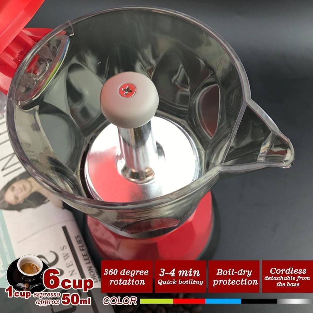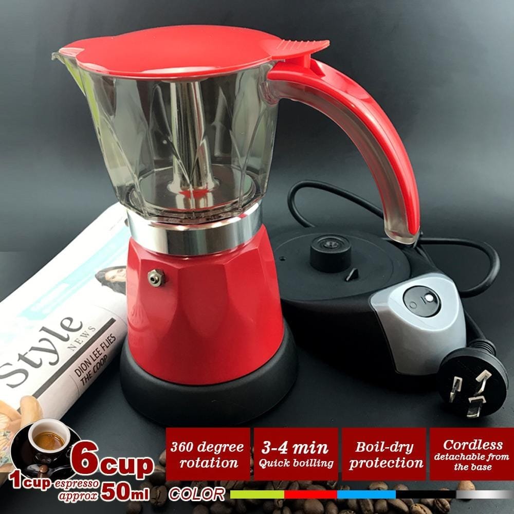 Red Electric Moka Coffee Maker Espresso Machine Italian Classic 6 Cups Auto Power