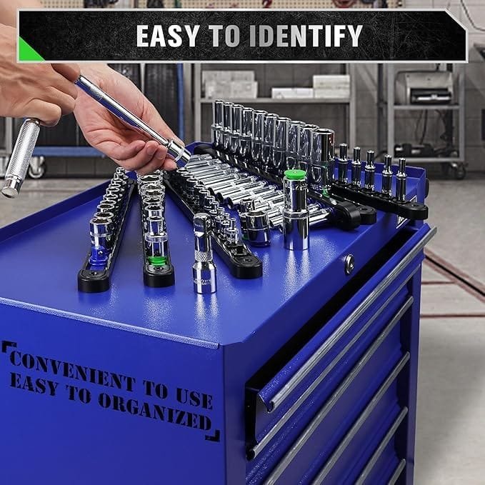 SWANLAKE 6-Piece Swivel Socket Organiser Set, 1/4-Inch x 26 Clips, 3/8-Inch x 26 Clips, 1/2-Inch x 22 Clips, Premium Quality Socket Storage Holders
